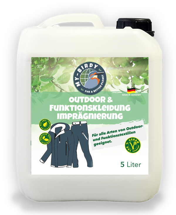 Bei jedem Wetter gut geschützt Verlassen Sie sich auf Ihre Kleidung! Die My-Birdy Outdoor & Funktions- kleidung Imprägnierung schützt Outdoor- und Funktionstextilien bei allen Wetterbedingungen. Dabei bleibt die Atmungsaktivität Ihrer Bekleidung, trotz der starken Wasserabweisung, vollständig erhalten.